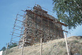 The site was inhabited since ancient times: in the year 1839, during some archeological excavations on the nearby Tramonti hill, was found the foundations of a Roman temple built on the ruins of a most ancient one. Castel Castagnaio was a strategic stronghold of the Casentino: from here was possible to control the narrow valley of the Vincena stream that from the 'Passo della Consuma' (Consuma Pass) descend toward Florence and the ancient road coming, through Croce a Mori Pass, from the Mugello. The castle was built exclusively to play a military role and it was never seat of the land Lord. Nearby was erected a Pilgrim's hospital. Castel Castagnaio was connected 'in sight' with all other castles of the Guidi like Porciano, Stia, Papiano. After Monteaperti battle, in 1269 the castle was shaved to the ground by a Ghibelline army. In 1440, after the definitive defeat of the Guidi, the castle became possession of the Florentine Republic and its decline began. The rest of some medieval walls are still visible. One of these two segments was the outer wall of the keep. Is still recognizable also a cistern with barrel vault. At the margin of the castle site stand the S. Bartolomeo church, built between the 16th/17th century, with material excavated from the ruins of the castle, maybe on the old castle's chapel: one of the bells of the belfry has engraved the date of 1320. Inside, below the vaults, are visible some carved corbels dating 13th century.