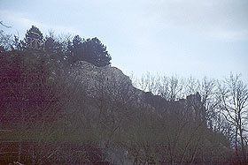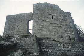 cliff, a tower on the main front, beside the gate, and the keep in the