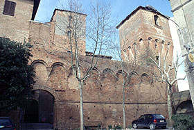 | One of the towers of the inner walled enclosure. | Inner walls: the other tower, the main gate. |