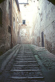| A secondary gate of the inner walls. | The ramp of access to the granary. | Looking up inside the inner courtyard. |