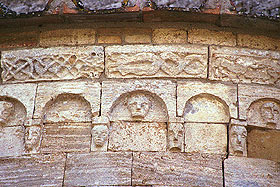 serie di archetti ciechi sorretti da delle colonnette a forma di faccia;
