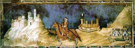 » Clicca qui per una veduta panoramica » Veduta notturna del Mastio Il castello � senza dubbio il monumento pi� noto del comune di Roccastrada se non dell'Alta Maremma, per la sua importanza di documento storico (� raffigurato nel famoso affresco 'Guidoriccio da Fogliano all'assedio di Montemassi' del palazzo pubblico di Siena attribuito a Simone Martini) e per l'alto esempio di architettura gotica che rappresenta. La fortificazione, che corona un colle di 280 metri sopra al paese, � costituita da resti dei due corpi di fabbrica preminenti, a nord � il Palazzo/Mastio con la base del muro a scarpa con numerose finestre con vasta apertura che ne denunciano la funzione abitativa e non strettamente militare, resti di una torre poligonale. All'interno del Palazzo si notano ancora le tracce delle travature dove appoggiavano i solai lignei, comunque successivi ad un solaio a volta di cui sono evidenti i resti. All'edificio fu in seguito addossata una grande cisterna per l'acqua, ancora oggi intonacata a calce. A sud troviamo i resti di una torre quadrangolare, dotata di feritoie, con avanzi di volte in muratura e peducci ben lavorati.