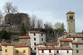L'occupazione viscontea durò fino al 1360, quando i pistoiesi con un colpo di mano ne tornarono in possesso. Dal 1375 vi risiedette comunque un contingente fiorentino e dello Stato fiorentino entrò a far parte definitivamente dopo l'annessione di Pistoia (seppure subendo ripetuti attacchi ed invasioni nei secoli seguenti) come centro dipendente dal capitanato della montagna pistoiese. Poco resta della duplice cinta muraria concentrica che avvolgeva l'abitato, scomparsi i due accessi, la Porta Pistoiese e la Porta Bolognese. Notevoli invece i resti della rocca, posta al vertice più elevato delle fortificazioni: avanzi del tracciato della mura - quasi interamente conservato - e la svettante torre del cassero, conservata per un terzo della sua altezza originaria che superava i 20 metri, con pianta pentagonale, resti di una bifora e del sottostante vano ad arco acuto di accesso. |