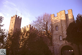 embattled walled curtains, the chapel, the two gates (still endowed with