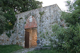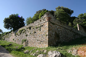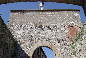 | Town walls between Porta del Triano and Porta del Pianello. | Moreschini Tower near the disappeared Porta a Follonica. |
