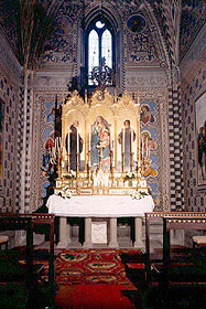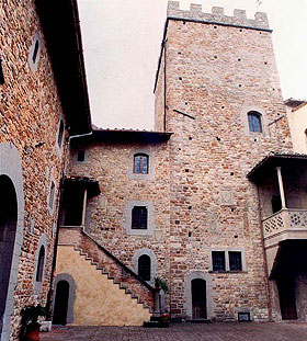 The present battlements were realised as ornament during the restoration of 1910. From the 15th century Il Palagio was endowed with many art's masterpieces. Portraits of Florentine nobles, pictures with hunting or battles scenes or Terracottas from the school of Della Robbia were brought to the Palagio to adorn the splendid, great halls. The gothic chapel is still fully decorated and in its centre there is a plaster cast picturing a Madonna with Child. The original work of art was here until the beginning of the 20th century, when it was given to the Bargello Museum in Florence. Actual owner of the castle is the family of the Marquis Goretti Miniati.