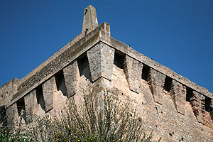 A series of wall walks connects the various parts of the fortress, among which an array of covered stair cases lead to a more elevated terrace. Originally, the upper part was characterized by the presence of a now lost group of sentry boxes. Inside, the base housed cisterns that guaranteed water collection, while the sentry’s quarters were on the upper levels.