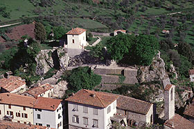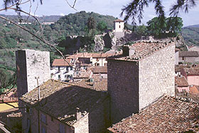The necessary to have an exceptional panoramic sight on the whole valley and the surrounding mountains is climbing up to the top of the 'sasso' and lean out, carefully, from the ramparts of the medieval fortification. Its characteristic position of 'eagle's nest' make its visit however interesting, although the Rocca can be considered more a great watchtower than a real fortress. During the Middle Age the zone was under the dominion of the counts of the Aldobrandeschi family, to them is owed the construction of the fortifications in the second half of 13th century. The village was originally defended also by walls and by a keep with square form built on another small relief in front of the 'sasso'. This was the central nucleus of Roccalbegna, of which today remain only two towers and a line of the walled enclosure. The fortress that has come almost intact to us was the small rocca, used only as point of lookout and last shelter in case of capitulation of the suburb. During the 14th century the suburb knew a period of great degrade that caused its almost total abandonment. In 1455 the fortifications were readapted from the Senesi, but this only partly stopped the regressive trend of this area. With the defeat of the Senese Republic, at the mid-16th century, Roccalbegna passed to the Granduchy held up by Cosimo I de' Medici, but already in 1560 it was given in feud to the cardinal Antonio Sforza.