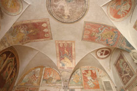 | The keep/main tower of the walled curtain | The coats of arms of the facade |