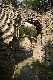 Before reaching the fortress itself we meet other defenses, located around 30 meters below the vertex of the hill. They were the walls of the village that developed around the Rocca, build in bricks, with two Gates, the Porta Volterrana at north-east and the Porta San Rocco at west, this one strengthened with a tower at control of the road that leads under the walls of the rocca.