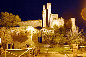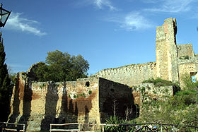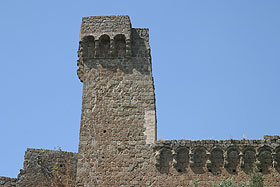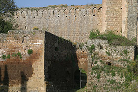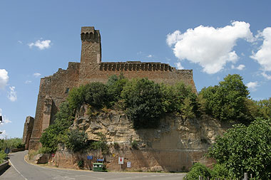 From the summit of a cliff of tuff, set to the vertex of the inhabited area, rise the mighty ruins of the Rocca Aldobrandesca, erected in the 12-13th centuries on the place of the previous small Etruscan and Roman fortifications, that the perimeter of the walls seems tracings perfectly. The reddish mass of the fortification has the aspect that was given it after the 1572 restoration, when new ramparts was added to the walled enclosure. Because of the historical events that saw Sovana always at the border of the economic and social development of the zone, already during the years of 17th century begun the dismantlement of the Fortress. Today still stand a tower and a line of walls, partly still endowed machicoulis in stone, besides the gate of access. The surrounding zone is rich of stupendous Etruscan graves dug in the tuff.