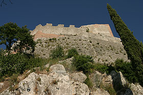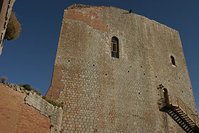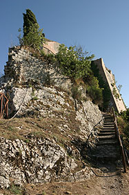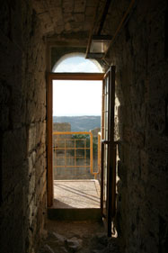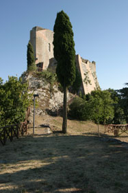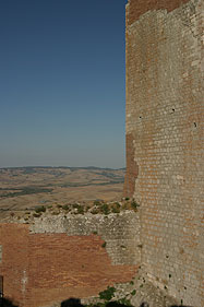 | The eastern front that control the only way to access the fortification. | The wall walk on the walls of the keep enclosure. Below the village of Rocca d'Orcia. |
